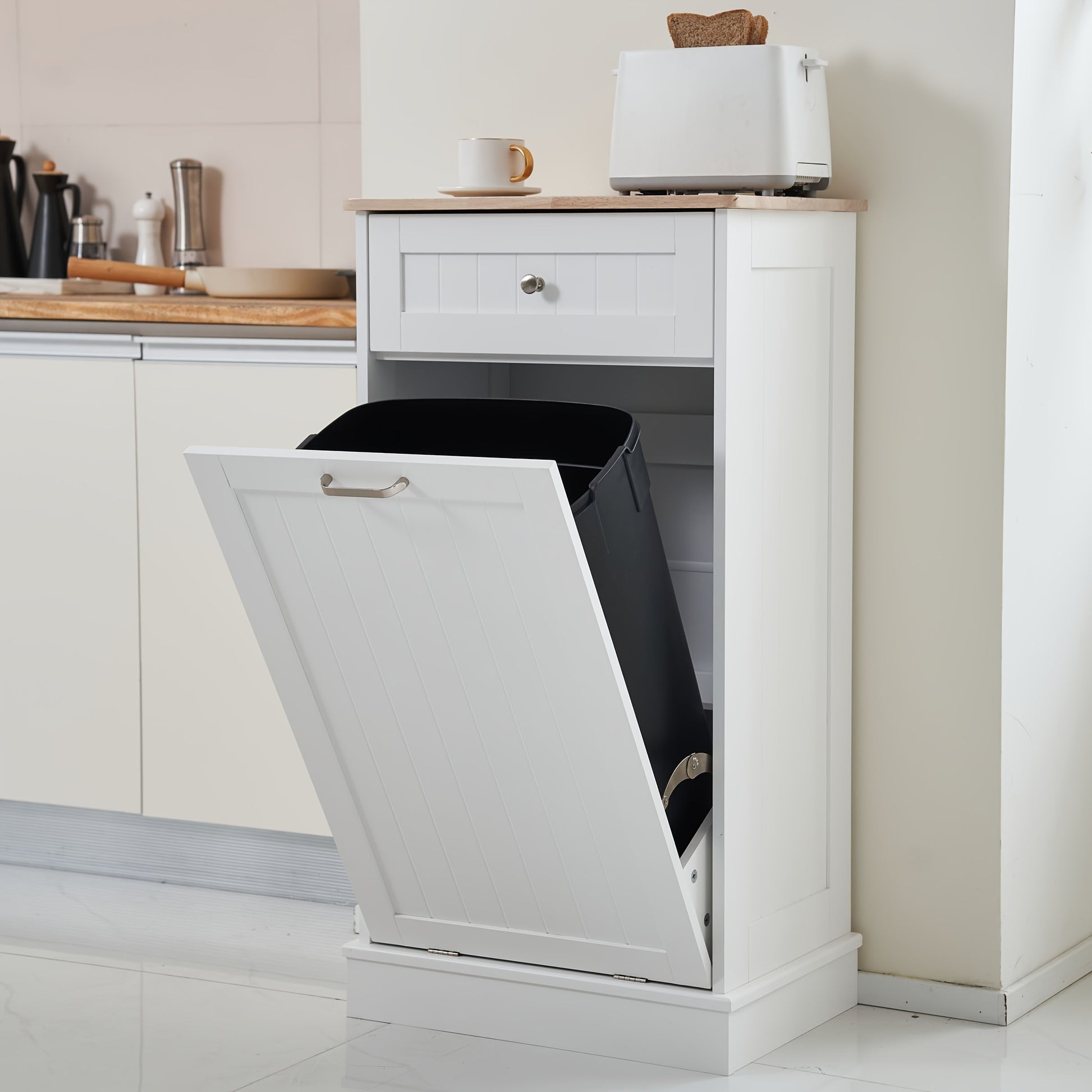 13 Gallon White Wooden Cabinet with Tilt-Out Design