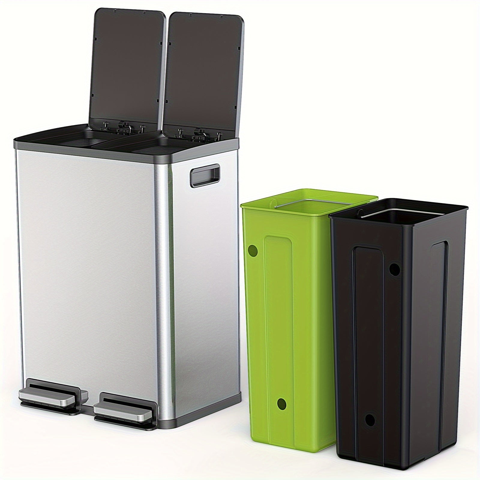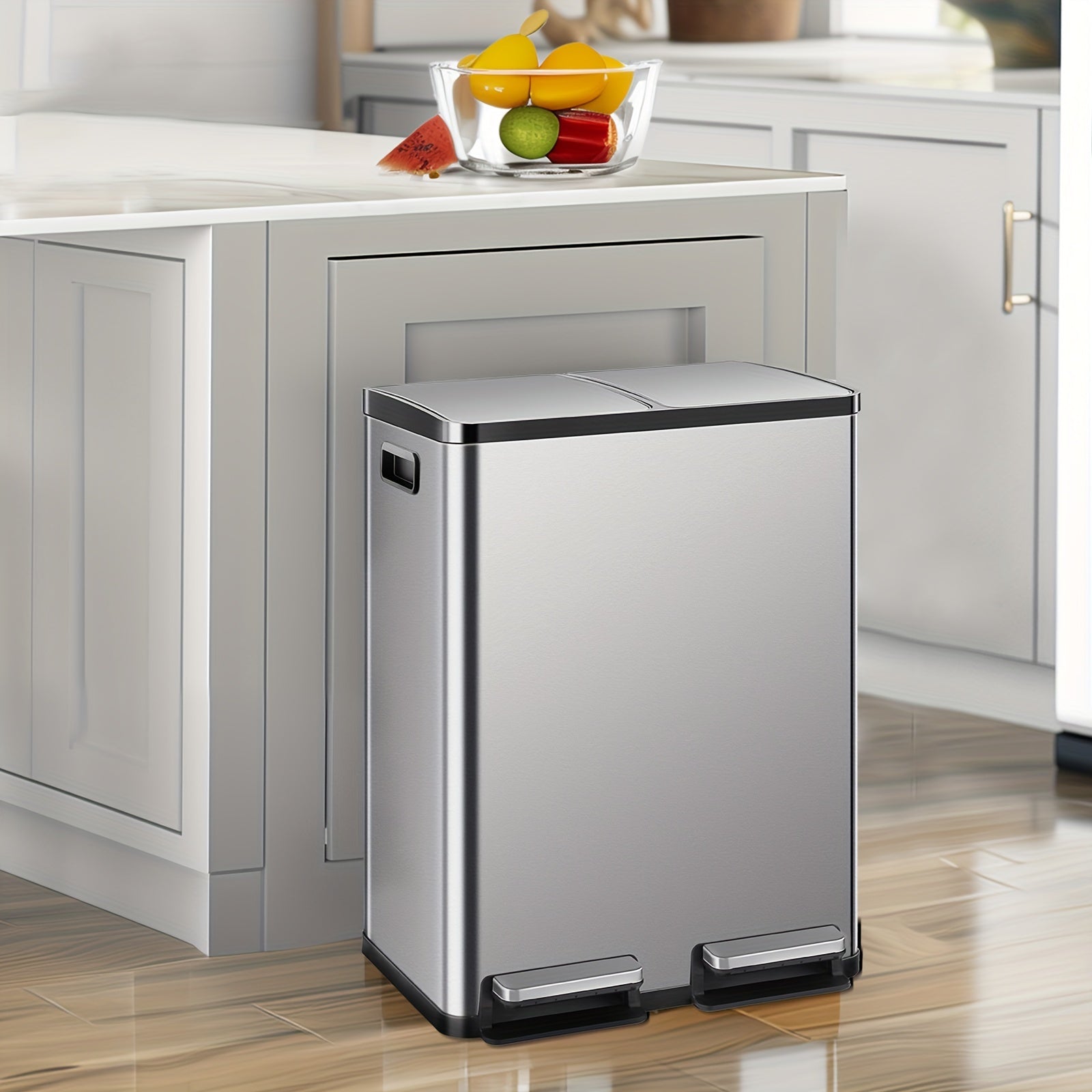 15.85gal Silver Modern Style Kitchen Trash Can Double Compartment