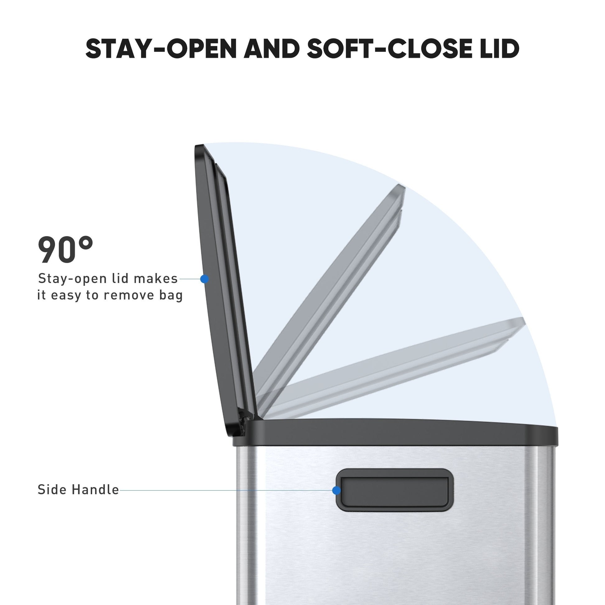 The innovative Ladder Style design allows for efficient separation of waste and recyclables, making it easier than ever to keep your kitchen organized and environmentally friendly. With a generous capacity of 15.85 gallons, you’ll have ample space for all your kitchen waste, reducing the need for frequent emptying.