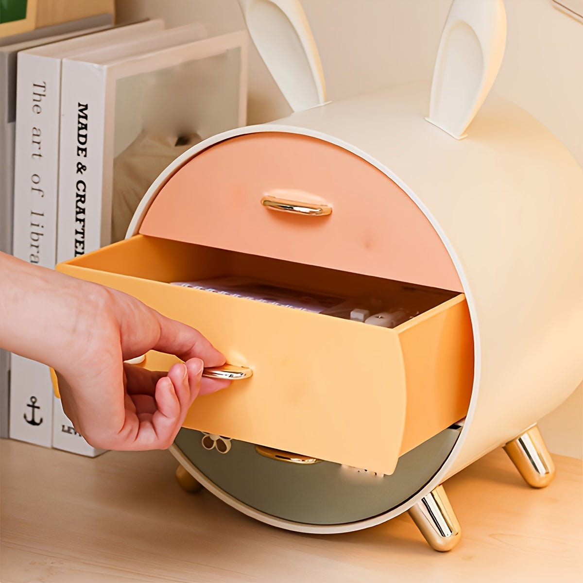 1pc Large Capacity Rabbit Decor Makeup Storage Case Multi-functional Cosmetic Organizer with Drawer Vanity Decor Skincare Stationary Container