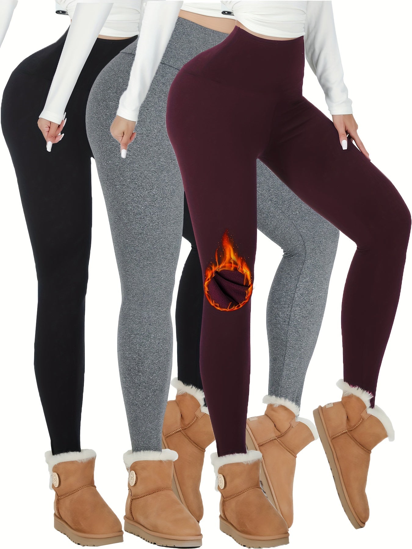 3 Pack Super Soft Plus Lined Leggings, Solid Color Thermal Warm Pants for Women, Workout Yoga Running, Fall and Winter