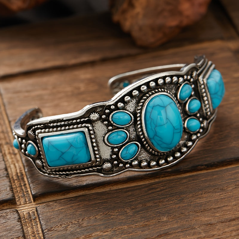 Discover the stunning elegance of our Faux Turquoise Retro Bracelet, a beautifully crafted accessory that encapsulates vintage charm and modern sophistication. This exquisite piece features striking turquoise and zircon designs, perfect for adding a touch of color and character to any outfit.
