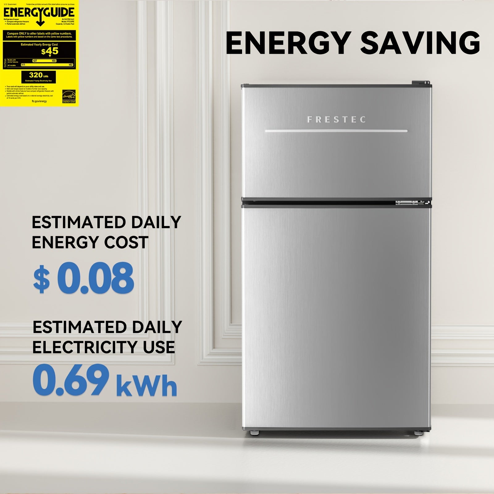 Introducing the Frestec 3.5 Cubic Feet Mini Fridge With Freezer Compartment, the perfect solution for your compact refrigeration needs. Designed for functionality and style, this double door fridge effortlessly blends into any space, making it ideal for dorm rooms, small apartments, or office break rooms.