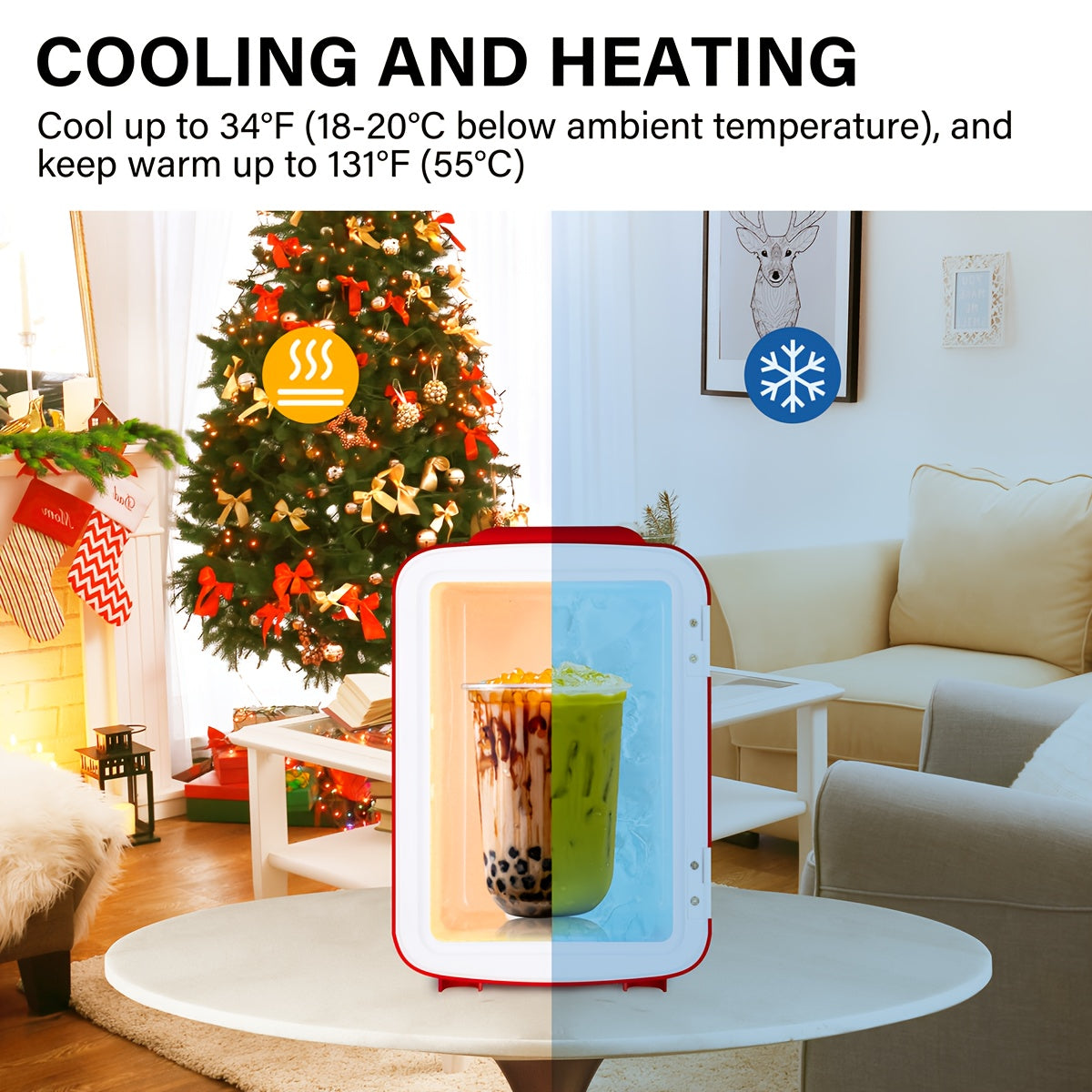 - Cool or Warm with Ease: Flip the switch to transition from cooling to warming effortlessly. Enjoy refreshing beverages at a chilling 34°F (18-20°C below ambient temperature) or keep meals warm up to 131°F (55°C).