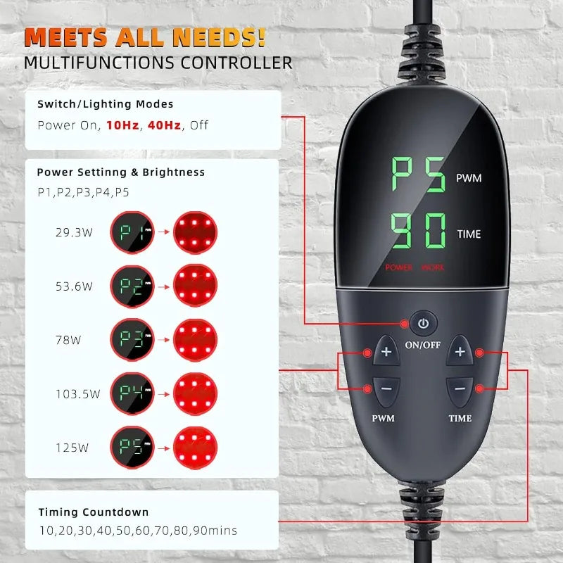 - Powerful LED array: 1280 LEDs emit both 660nm red and 850nm infrared wavelengths to support deep tissue penetration, easing soreness and stiffness.