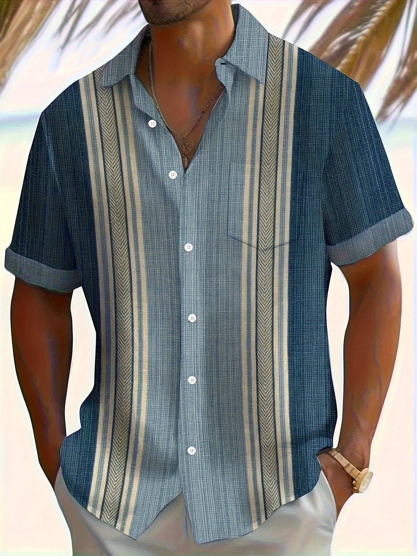 Summer Breathable Men's Short Sleeve Striped Shirt - Casual Button-Up for Vacation & Outdoor Activities