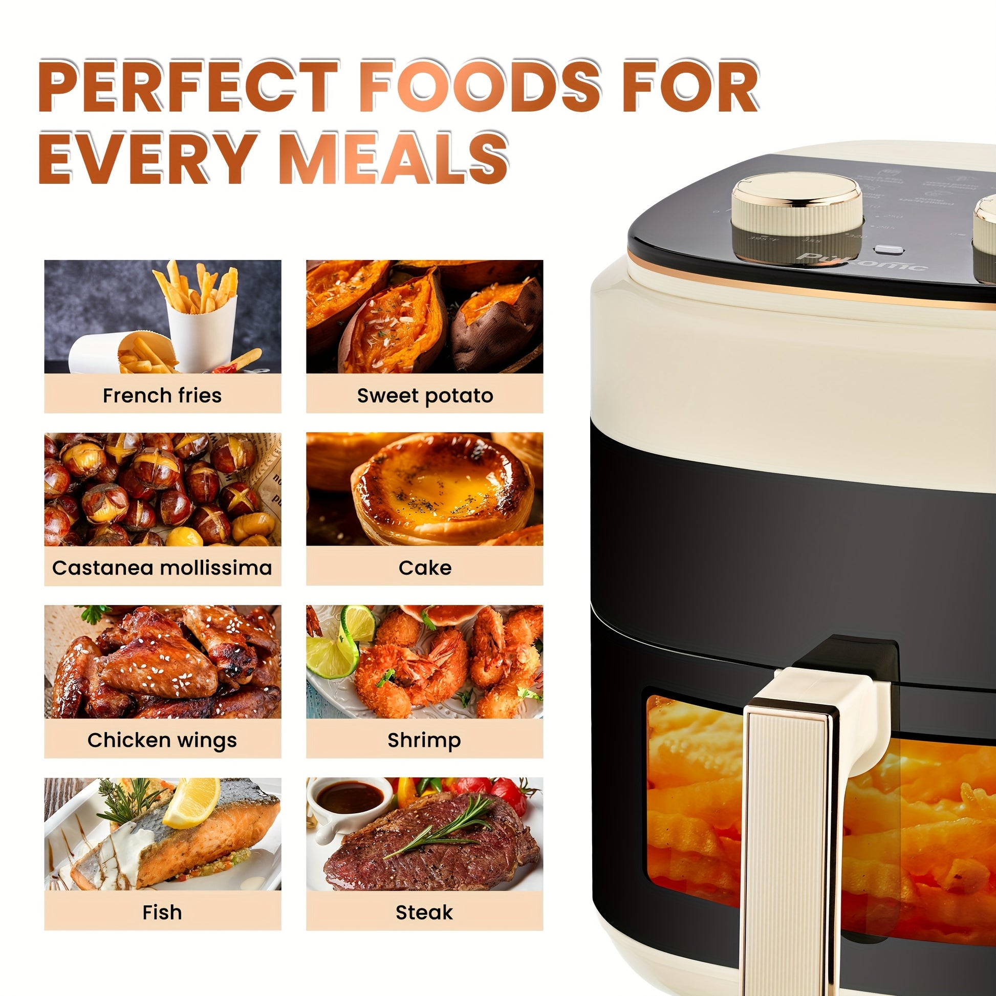 SUSTEAS 4QT Air Fryer 8-in-1 Adjustable Temp Beige