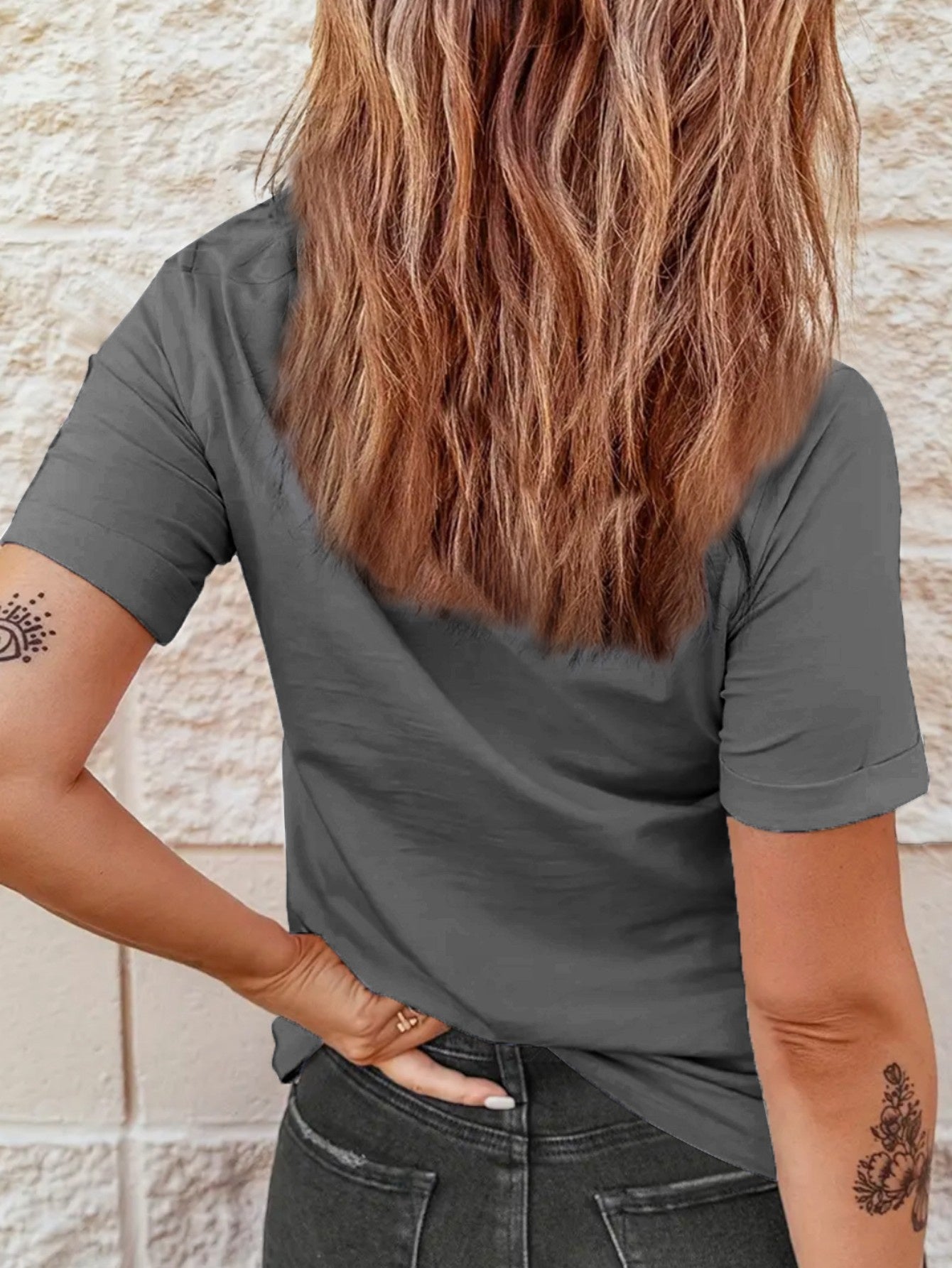Womens Crew Neck Fashionable Heart Print T-Shirt Casual Top
