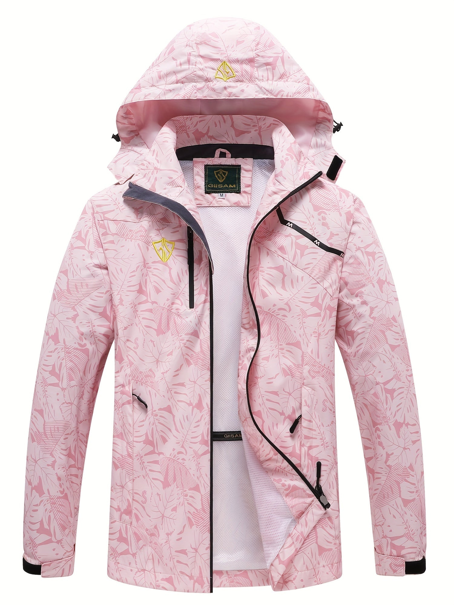 A stylish raincoat for women that is both waterproof and lightweight, featuring a full zipper and a hood for protection against the wind.