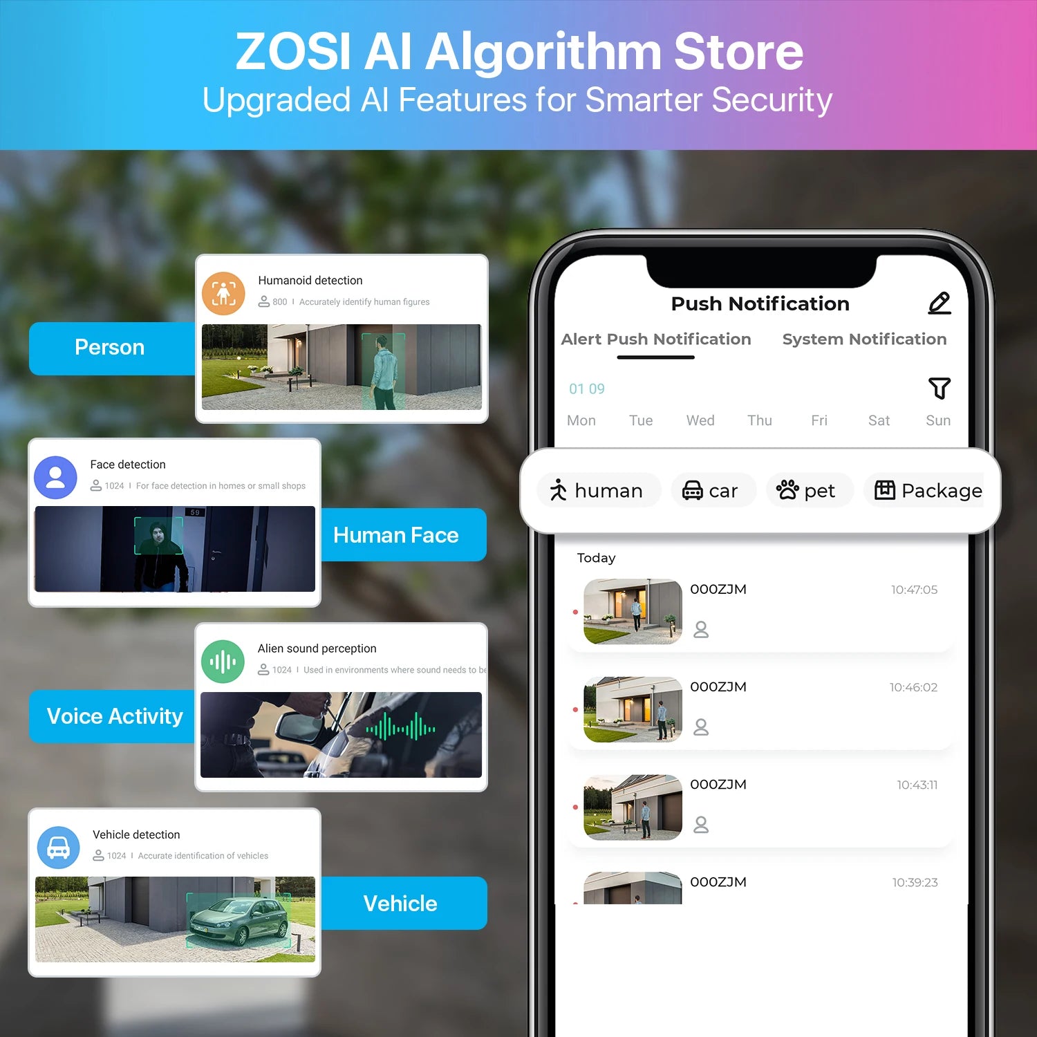 - Intelligent AI Detection: Receive alerts for persons, vehicles, pets, and parcels, ensuring you never miss a significant event.